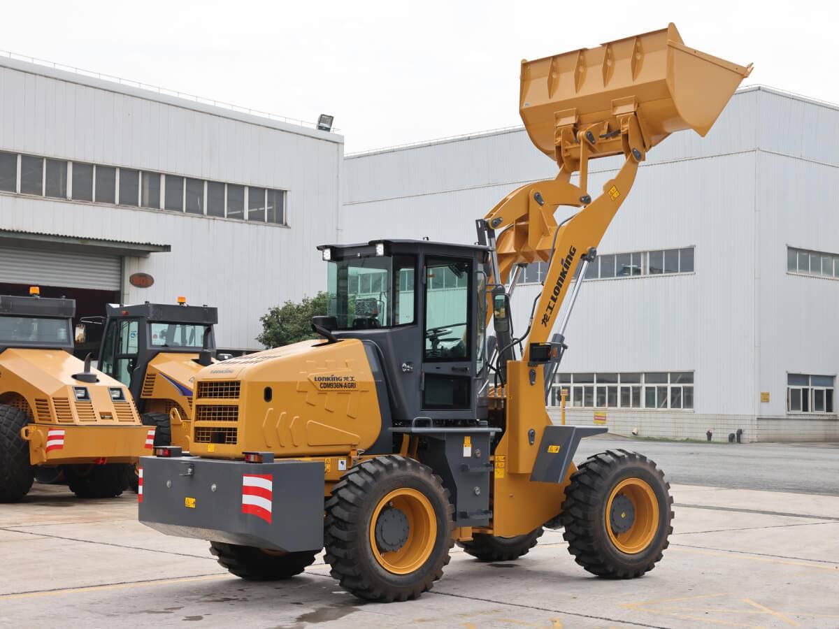 Комплектация: Двигатель YTO YT4B3-24 мощностью 86 л.с. Управление рабочим оборудованием рычагами Климатическая установка в кабине: кондиционер, печка. Удлиненная стрела Увеличенный ковш объемом 1,5 куб.м. для легких материалов