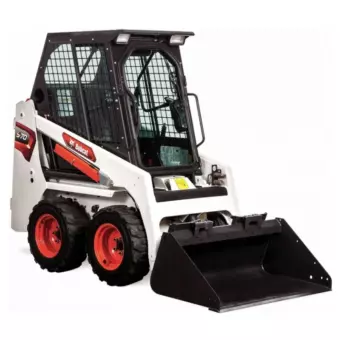 Bobcat S450 – наиболее габаритная модель в категории колесных погрузчиков средних размеров. Она удачно сочетает в себе функции мини-погрузчиков и возможности крупногабаритных машин. Сферы использования Выполнение погрузочно-разгрузочных работ – главное эксплуатационное назначение погрузчика Bobcat S450. Он также помогает доставлять крупные партии грузов на мелкие и средние расстояния. Эта модель погрузчика нередко применяется при выполнении уборочных работ на городских территориях. Иногда ее можно встретить на заводах. Погрузчик Bobcat S450 успешно участвует в основных производственных процессах в цехах. Bobcat S450 отличается хорошей маневренностью и проходимостью. Он без труда преодолевает узкие проходы и перемещается по малогабаритным помещениям. Режимы эксплуатации Погрузчик Bobcat S450 эксплуатируется в 2 режимах: В транспортном. Он активируется при транспортировке или перебазировке погрузчика до места начала проведения работ. В транспортном режиме Bobcat S450 развивает скорость до 30 км/ч. В рабочем. Этот режим эксплуатации погрузчика активируется уже на рабочей площадке. Предел скорости передвижения снижается до 7 км/ч. Рабочий режим необходим для качественного выполнения рабочих задач, требующих ювелирной точности. Основные характеристики Приводные цепи облегчают выполнение крупных объемов работ и эксплуатацию погрузчика в сложных рабочих условиях. Двигатель машины находится в доступном для оператора месте. Это значительно облегчает процесс технического обслуживания Bobcat S450. Давление во вспомогательном гидроконтуре погрузчика повышено на 20%, а его производительность увеличена на 22%. Погрузчик отлично справляется с подниманием, перевозкой и опусканием грузов суммарным весом до 590 кг. Высота разгрузки при этом достигает 2795 мм. Система охлаждения позволяет погрузчику сохранять свою производительность даже в нестандартных условиях эксплуатации. Это может быть как повышенная влажность, так и высокая температура. Bobcat S450 оснащается гидравлическими насосами с высокой мощностью. Они обеспечивают точность и гибкость работы погрузчика. Гидрошланги, размещенные в продуманной последовательности, исключают риск появления утечек. Количество соединительных элементов в погрузчике Bobcat S450 максимально снижено, что положительно отражается на долговечности его эксплуатации. Эта модель погрузчика может комплектоваться 7 разновидностями ковша. Конкретный тип оборудования подбирается в зависимости от специфики работ. Bobcat S450 совместим с более чем 30 видами прочей сменной техники.