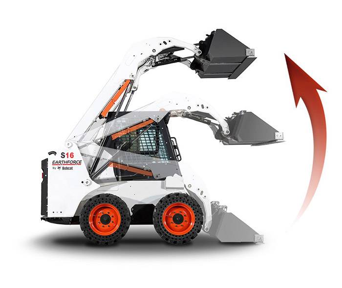 Earthforce S16 оснащен стрелой с радиальной схемой подъема, при которой ковш движется по дуге. За счет такой конструкции обеспечивается больший вылет, чем при вертикальной схеме, а сама стрела надежнее и проще в обслуживании.
